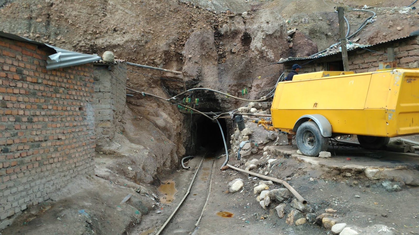 El colectivo nos sube al cerro y nos deja en frente de una pequeña entrada rectangular de marcos de madera que nos invita a agacharnos y adentrarnos en su oscura incertidumbre. Las linternas alumbran las vías férreas utilizadas para los carros que transportan material, pero aquellas líneas metálicas irán desapareciendo poco a poco a medida que avanzamos para ser cubiertas por el agua mezclada con barro.