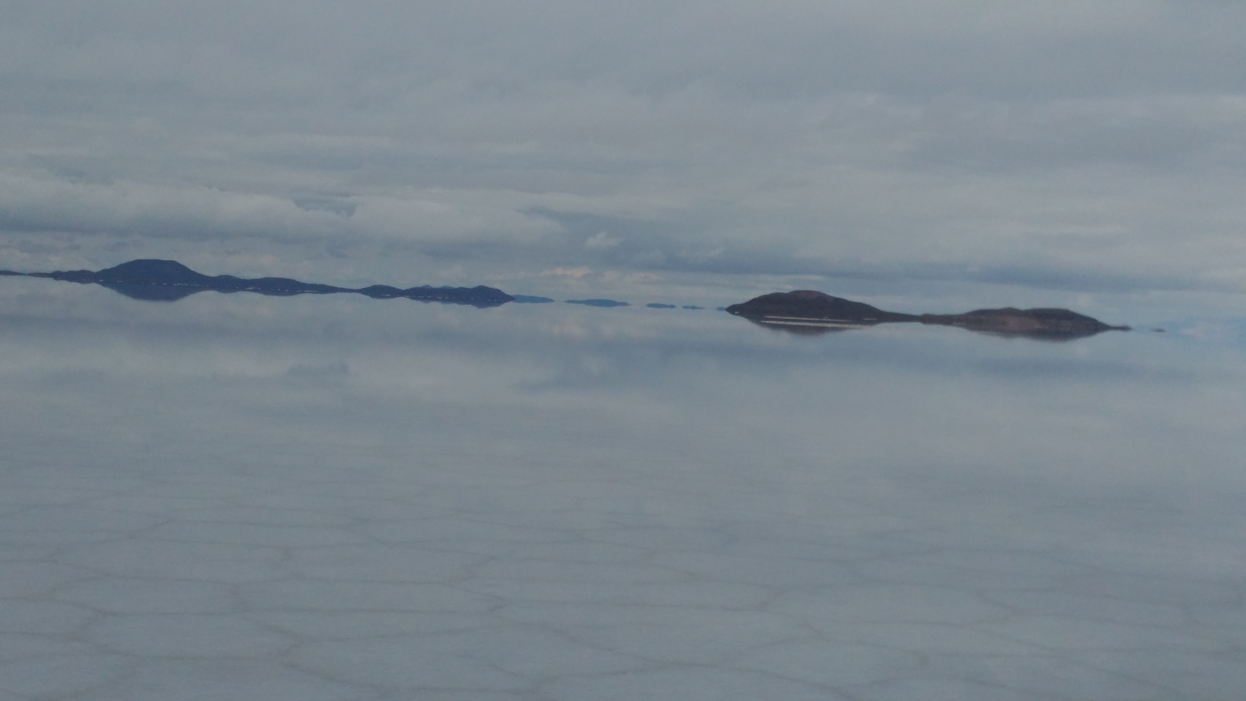Nuestro vehículo marcha por un camino de tierra que se eleva por encima del resto del terreno. El sol radiante alumbra la tierra inundada que yace a nuestros costados, a la cual pronto nos tendremos que sumar para conocer el famoso Salar de Uyuni, el mayor del mundo situado a más altura, a unos 3.650 metros y con una superficie de 10.582 km². El chofer duda antes de modificar el rumbo, ya que el suelo es barro con sal, combinación riesgosa porque puede atrapar las ruedas del vehículo y dejarlo estancado. A muy baja velocidad se adentra en el tramposo lodo, ya que sino el agua que hace chapotear la máquina se puede meter en el radiador del motor y la sal le traería graves problemas a su funcionamiento. A pesar de toda la tensión que traen estos riesgos, más adelante el paisaje, una pintura de ficción, nos recompensará la odisea.