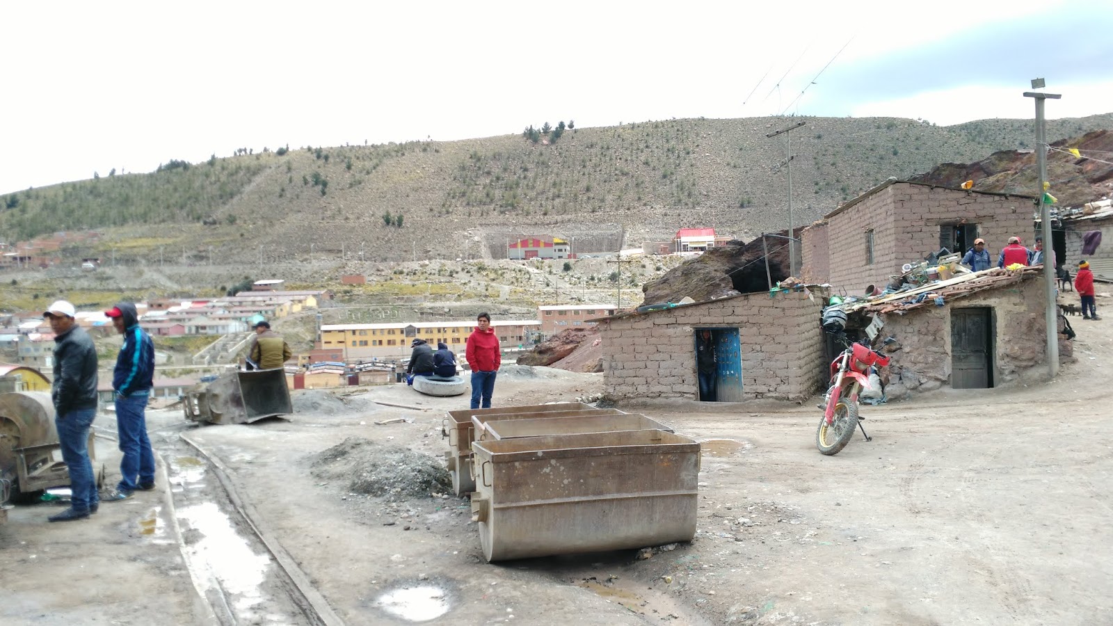 El sol de madrugada se cuela por el pequeño patio del hostel donde nos encuentra a ambos calzándonos un par de botas, traje marrón y casco con linterna, mientras que el guía, que también es minero, nos lanza indicaciones. Tomamos la bolsa de consorcio recubierta con tela que nos proveyeron para guardar algunas cosas y abordamos la combi que sólo hace una parada antes del destino final, un local que vende todo lo necesario para un trabajador de las minas de Potosí. Allí el guía nos da de probar la hoja de coca y el alcohol etílico, la dieta diaria de los mineros para sobrevivir a su ardua y peligrosa labor.